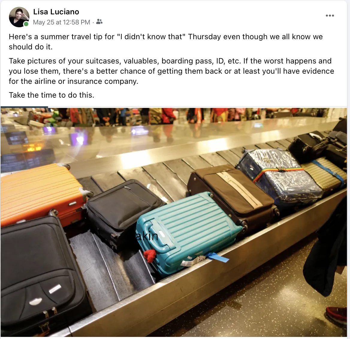 TAKE PICTURES OF IMPORTANT ITEMS BEFORE YOU FLY