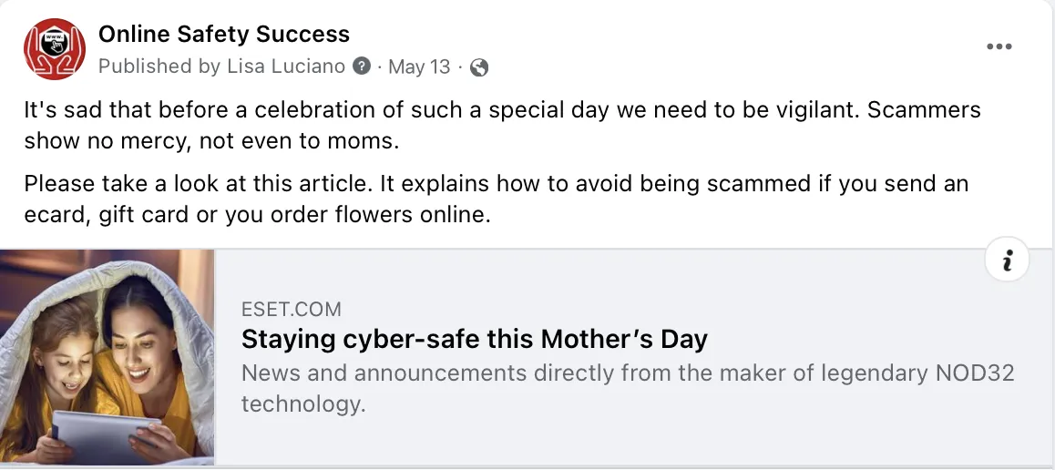 PROTECT YOURSELF ONLINE ON MOTHER'S DAY.